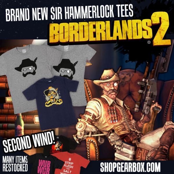 New Borderlands 2 tees are now available for pre-order in the Gearbox Shop along with restocks of many that were sold out!